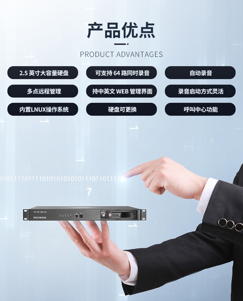 SOC1900S電話錄音系統(tǒng) 內(nèi)置B/S框架呼叫中心