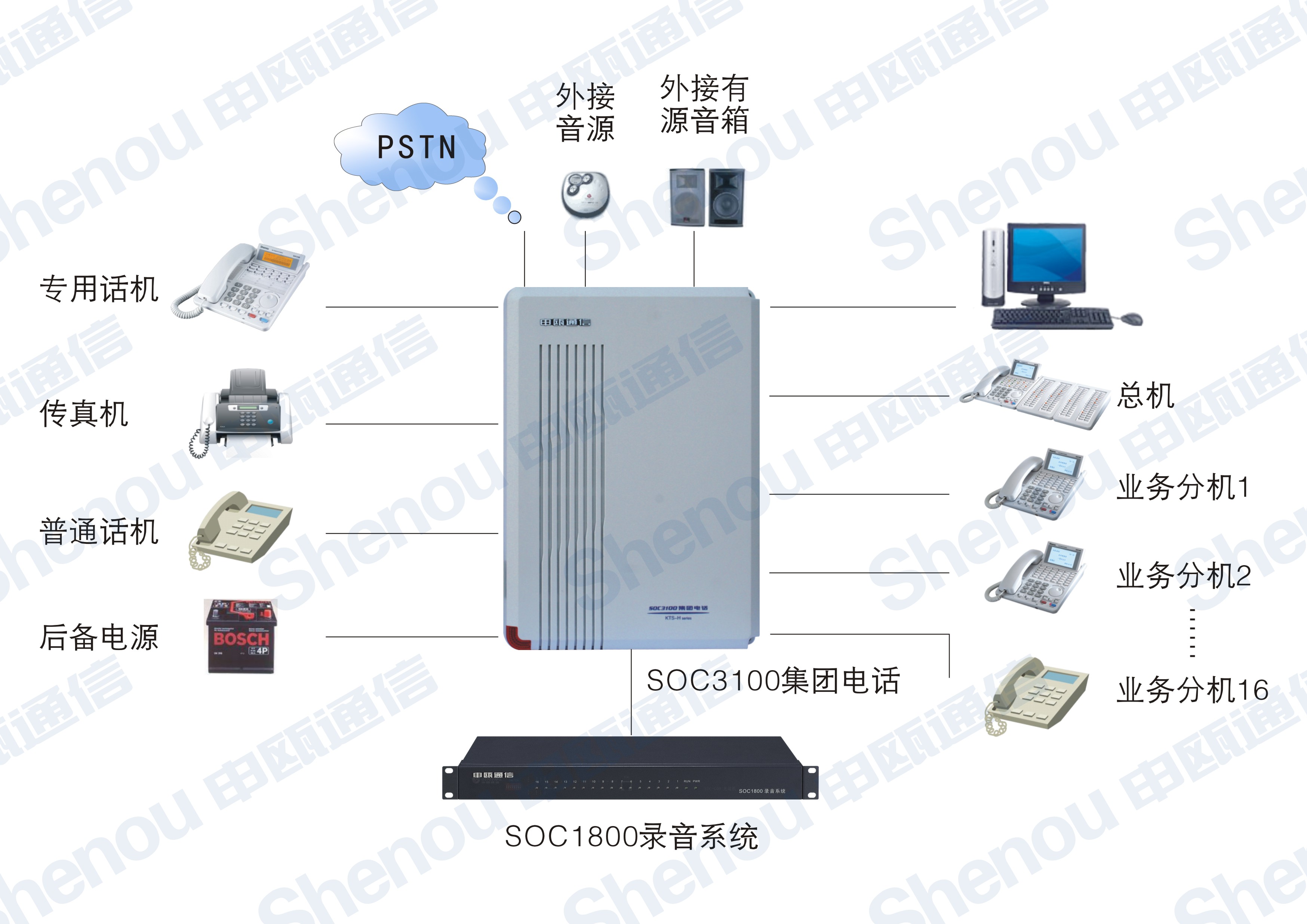 18.分機功能豐富:分機擁有許多實用的功能,內外線區(qū)分振鈴、鬧鐘服務(并報時)、呼叫轉移、代接來話、遇忙回叫、電話會議、免打擾、強插、呼叫保護等功能。