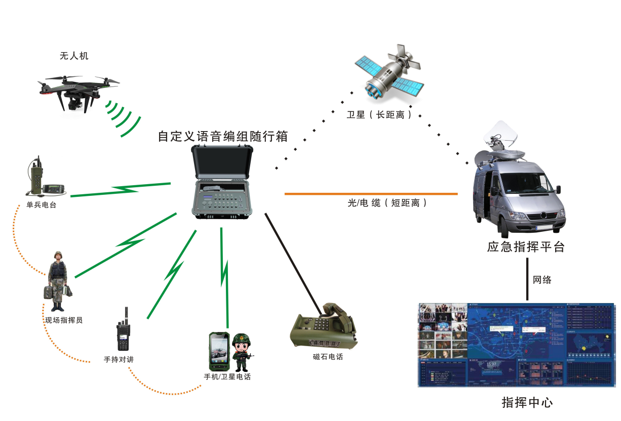 自定義語音編組隨行箱設(shè)備根據(jù)使用場(chǎng)合不同分為便攜式(防水)和機(jī)架式(可車載),滿足現(xiàn)場(chǎng)不同通信設(shè)備的快速互聯(lián)互通需求;支持有線延長(zhǎng)模式(1.5Km),可將無線信號(hào)覆蓋至室內(nèi)、地下或其它原來無法通信的特殊區(qū)域;支持快速分組模式,將接入的設(shè)備通過簡(jiǎn)單的切換開關(guān)分成兩個(gè)通話組,同組有效語音互相轉(zhuǎn)發(fā),兩個(gè)組同步工作互不影響。為公共應(yīng)急事件處理各組成單位提供通信設(shè)備的低成本互聯(lián)接入解決方案,快速完成現(xiàn)場(chǎng)統(tǒng)一的語音調(diào)度指揮系統(tǒng)搭建,為應(yīng)急事件處理提供可靠的通信互聯(lián)平臺(tái)。