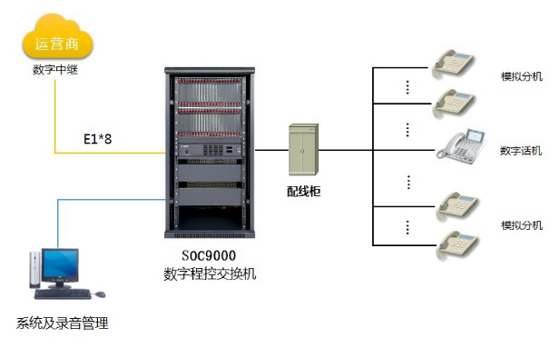SOC9000系列支持最大物理端口為2048,適用于大中型公司集團(tuán)電話。