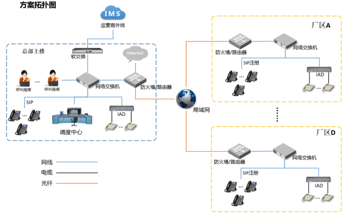 在IP調(diào)度通信軟交換系統(tǒng)統(tǒng)一管理下,實(shí)現(xiàn)分支間的分機(jī)直接互通,及時(shí)響應(yīng),如會(huì)議和廣播模式; 在IP調(diào)度系統(tǒng)統(tǒng)一管理下分支機(jī)構(gòu)可以通地固定站出局當(dāng)?shù)毓潭ɑ蛞苿?dòng)電話, 各分支站點(diǎn),對(duì)過(guò)VOIP語(yǔ)音網(wǎng)關(guān)與無(wú)線對(duì)講中繼臺(tái)連接,實(shí)現(xiàn)IP調(diào)度中心的指令直接發(fā)送到無(wú)線對(duì)講終端,相應(yīng)無(wú)線對(duì)講終端也可以通過(guò)發(fā)送PPT指令,申請(qǐng)與調(diào)度指揮中心通話;并且可以調(diào)度中心統(tǒng)一管理下,實(shí)現(xiàn)各分支機(jī)構(gòu)之間的通話。