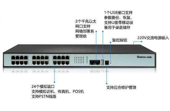模擬中繼FXO及模擬用戶FXS:內外線相加24個模擬接口(FXS和FXO)