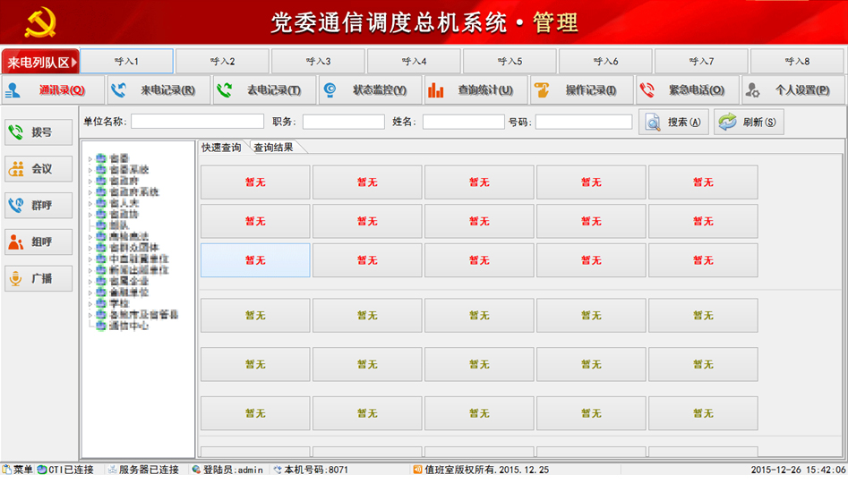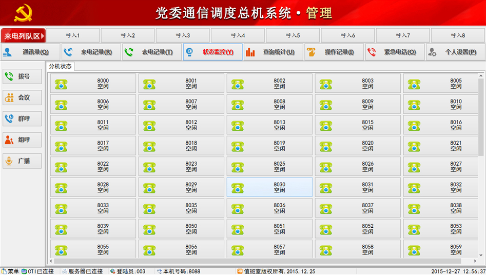 當(dāng)前位置:首頁>>產(chǎn)品中心>>融合通信產(chǎn)品>>礦用調(diào)度機(jī)、調(diào)度電話系統(tǒng)>>黨委通信調(diào)度總機(jī)系統(tǒng)