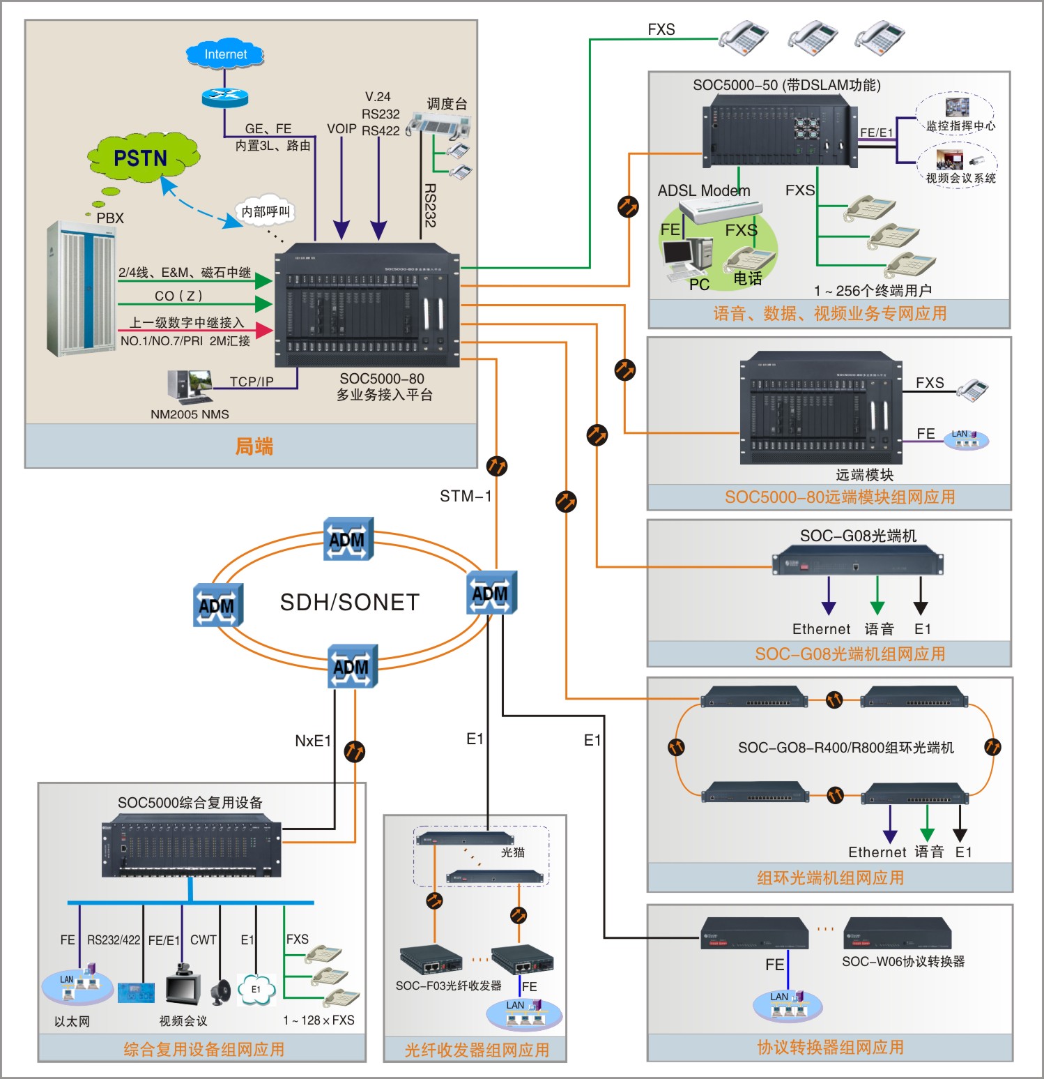 SOC5000-80多業(yè)務(wù)接入平臺(MSAP)是申甌通信設(shè)備有限公司設(shè)計(jì)的具有語音交換、光傳輸、PCM復(fù)用、信令匯接、64Kb交叉、2M交叉、2M匯聚、以太網(wǎng)匯聚等多種技術(shù)于一體的功能強(qiáng)大的多業(yè)務(wù)接入平臺,實(shí)現(xiàn)語音、數(shù)據(jù)、圖像(壓縮和非壓縮)的交換、匯聚與傳輸。根據(jù)不同組網(wǎng)的要求靈活搭建,從而滿足客戶專網(wǎng)業(yè)務(wù)需求。通過納入SOC-NM2005綜合網(wǎng)管平臺,支持局端和遠(yuǎn)端設(shè)備的統(tǒng)一監(jiān)控和管理;實(shí)現(xiàn)多級網(wǎng)管、遠(yuǎn)程管理;對網(wǎng)絡(luò)實(shí)行集中操作、維護(hù)和管理(OAM)功能,實(shí)現(xiàn)電路的配置和調(diào)度。操作簡單易用,提高網(wǎng)絡(luò)運(yùn)維效率,降低網(wǎng)建運(yùn)維成本。